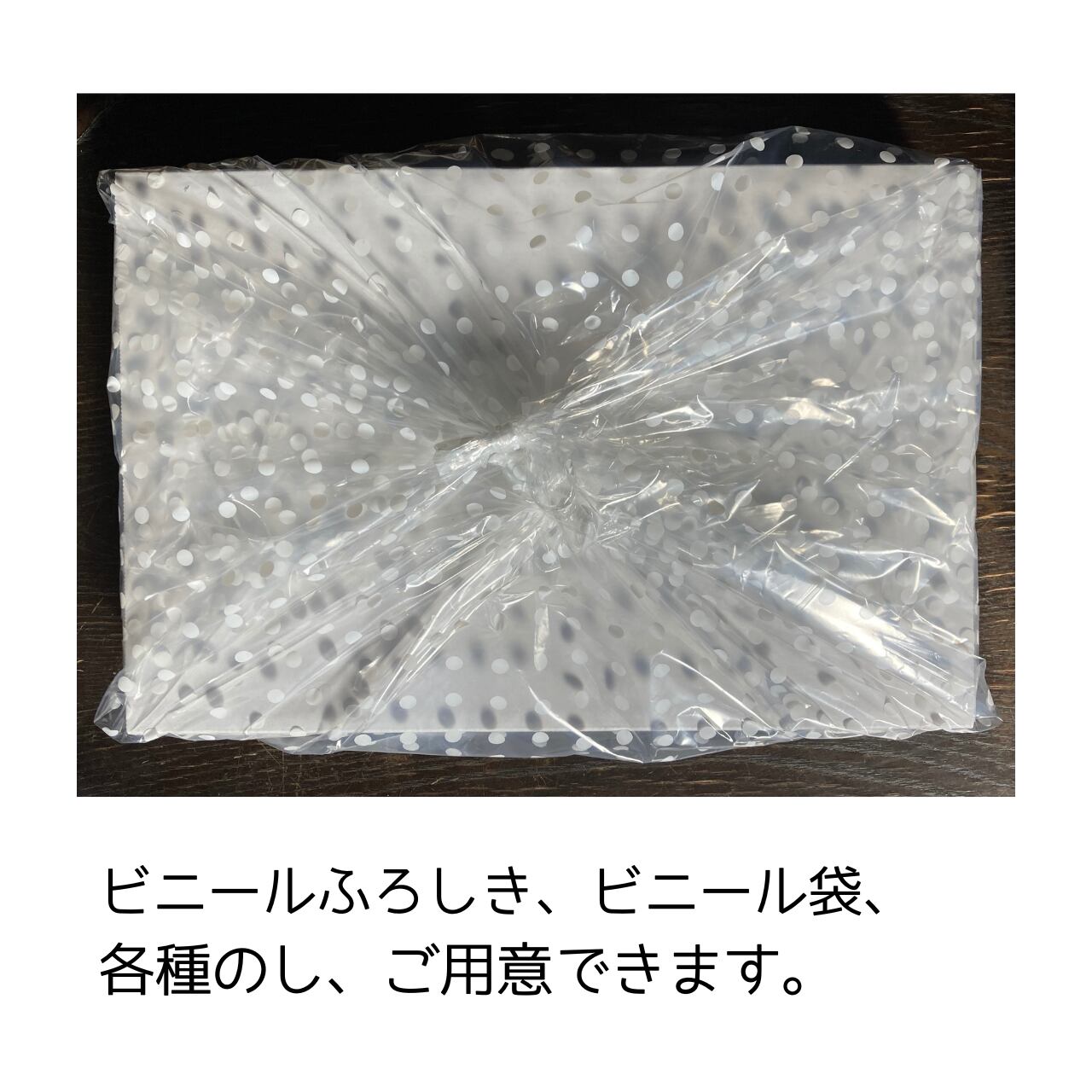 ■ビニール風呂敷、ビニール袋、各種のしを用意できますので、必要な場合はお知らせください。